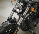 Hız ölçer ve alta monte aynalar içeren siyah yarış stili gidon, Forty-Eight™ motosikletin sade görünüme katkıda bulunur.