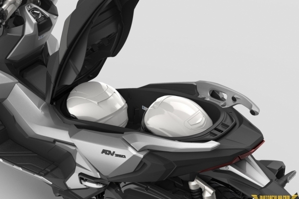 Avrupa'da sunulan Forza 350 tabanlı olan ADV 350, aynı eSP+ motor ile geliyor ancak şasi geometrisinde yapılan değişimler bozuk yollarda ve hafif arazide gidebilmesini kolaylaştırıyor. Önde 37mm Showa ters amortisörler ve arkada Showa çift amortisör, artan yerden yükseklik ile beraber scooter'a adventure havası vermeyi başarıyor. Sele yüksekliği 795mm.