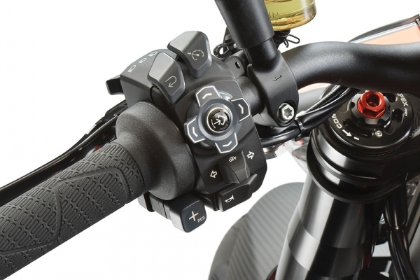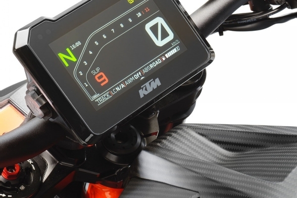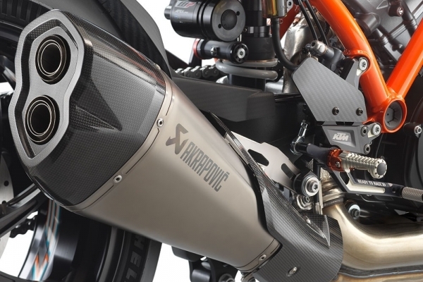 Titanyum Akrapovic slip-on egzoz ve kısa gaz kolu eklenen Super Duke RR, elektronik olarak da geliştirilmiş. Tüm sürüş modlarında çekiş kontrolünün müdahelesi azaltılmış. Spor modu yerine Performans modu getirilmiş. Performans modunda çekiş kontrolü, gaz tepkisi, kalkış desteği, ve ön teker kaldırma ayarları yapılabiliyor.