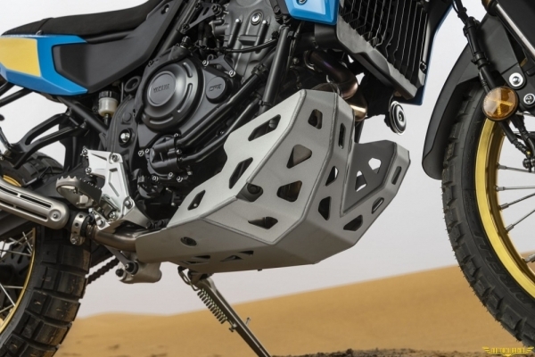 Tenere 700 Rally versiyonunda klasik açık mavi ve sarı renk şemasına yüksek ön çamurluk eşlik ediyor. Tamamen ayarlanabilir KYB ön çatallar 230mm hareket mesafesi sunuyor. Yerden yükseklik 255mm'ye yükseldiği için sele yüksekliği de 910mm. 4mm alüminyum karter koruma standart olarak geliyor. Yeni TFT ekranda Rally'e özel roadbook arayüz tasarımı yapılmış.