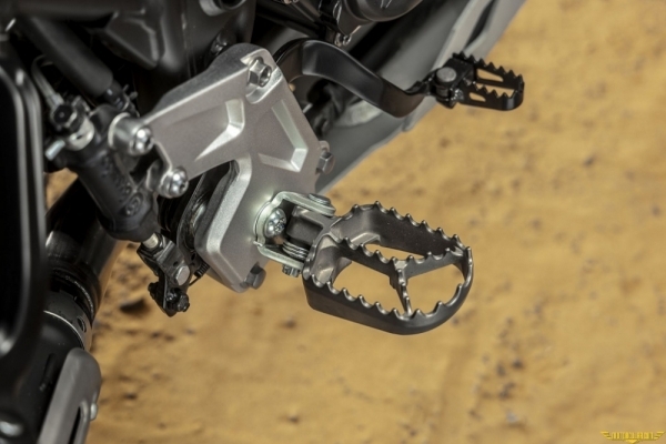 Yeni süspansiyon standart Tenere 700'de tamamen ayarlanabilir 43mm ön çatallar ile 210mm hareket mesafesi sağlıyor. Yeni çıkacak olan Low yani alçak seleli versiyonda ise hareket mesafesi 190mm. 875mm olan sele Low versiyonda 860mm'ye düşüyor. Bunun yanında yerden yükseklik de 240'tan 225'e düşüyor. Tenere 700'e binmek isteyen fakat yere basma konusunda çekinceleri olanlar için güzel bir seçenek. Yeni progresif bağlantılı arka amortisör eskisi gibi 200mm hareket mesafesi sunuyor ama Low modelinde 180mm. Hala ön yükleme ve diğer ayarlar yapılabiliyor. Önceden World Raid versiyonda gelen 10mm geniş ayak pegleri artık standart olarak geliyor.