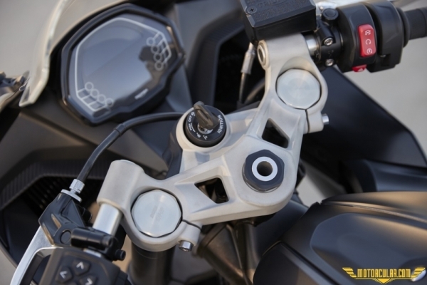 Peki bu motoru Trident 660'dan ayıran nedir? 660cc Üç silindirli motorun içinde yapılan değişimler sayesinde 11.250 devirde 93.7 hp güç, 8.250 devirde ise 69 Nm tork üretiyor. Gaz tepkisini ve çekiş kontrolü ayarlayan Sport, Road ve Rain olmak üzere 3 sürüş modu var. Quickshifter ise opsiyonel olarak takılabiliyor. En hissedilir fark ise oturuş pozisyonu çünkü clip-on gidon 95mm daha ileri ve 110mm daha aşağı konumlanırken, pegler 10mm daha yüksek ve 15mm daha geride. Bir supersport kadar olmasa da sportif bir ergonomi sunuyor.