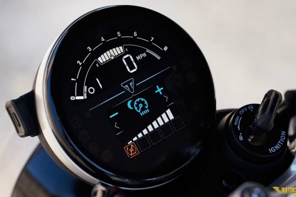 2019'dan beri piyasada olan retro hava soğutmalı görünümlü Speed Twin motoru Euro5+ olarak devam ediyor. 1200cc, su soğutmalı, paralel çift silindirli, 8 valf, SOHC olan bu blok, 7.750 devirde 103 hp güç ve 4.250 devirde 112 Nm tork üretiyor. Yeni tasarlanan, fırçalanmış paslanmaz çelik çift egzoz retro tasarımı devam ettiriyor.