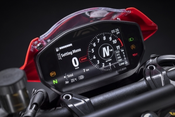 Ducati'nin en erişilebilir modellerinden biri olan Monster, artık Monster SP modeli ile büyük abilerinin donanım seviyesine erişiyor. İlk göze çarpan şey, MotoGP takımından esinlenilen kırmızı siyah renk şeması ve bu renk şemasını destekleyen kırmızı ön rüzgarlık, sele ve artçı sele kapağı gibi parçalar.