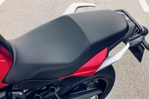 'Tracer 900' stili çift fara sahip ve tek parça, kademeli, iki kişilik sele ile yolcunun tutunması için bir parça eklenmiş.