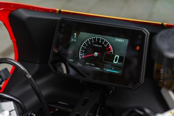 Retro tasarım sebebiyle sürüş pozisyonu daha agresif hale gelmiş, yani hakiki bir cafe racer olmuş diyebiliriz. Yeni kafa grenajın ve ön camın altında clip-on tarzı yarış gidonu kullanılıyor. Pozisyon ne naked kadar dik oturuşlu, ne de supersport kadar öne yatık; ikisinin ortası gibi duruyor. Motorun yüksek teknolojisi kokpite baktığınız anda hem butonlarla hem de ekranla kendini belli ediyor. Arkaya doğru baktığınızda ise sele, yan kapaklar ve sökülebilen arka sele kapağı bir bütünlük oluşturuyor.